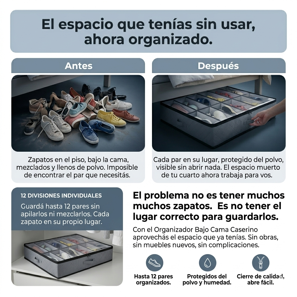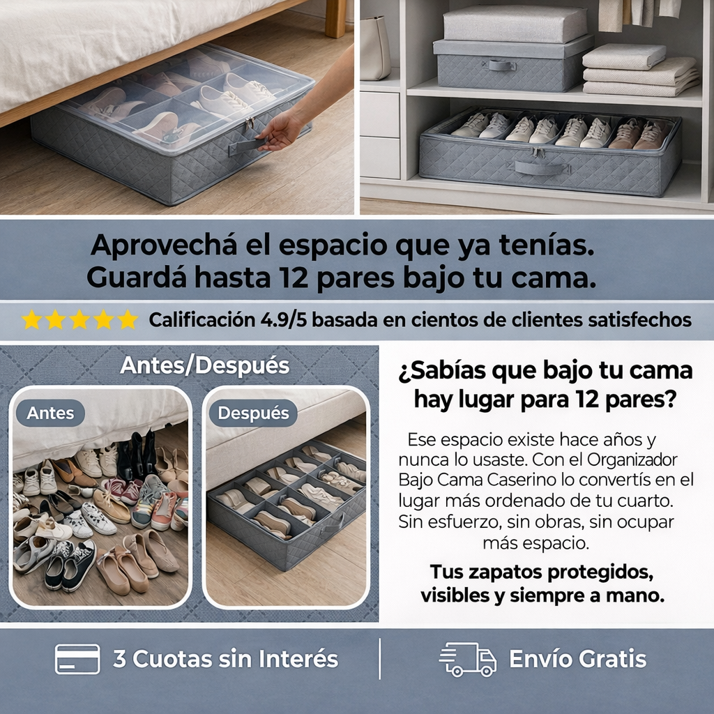 Organizador Zapatos Bajo Cama 12 Divisiones Placard Orden